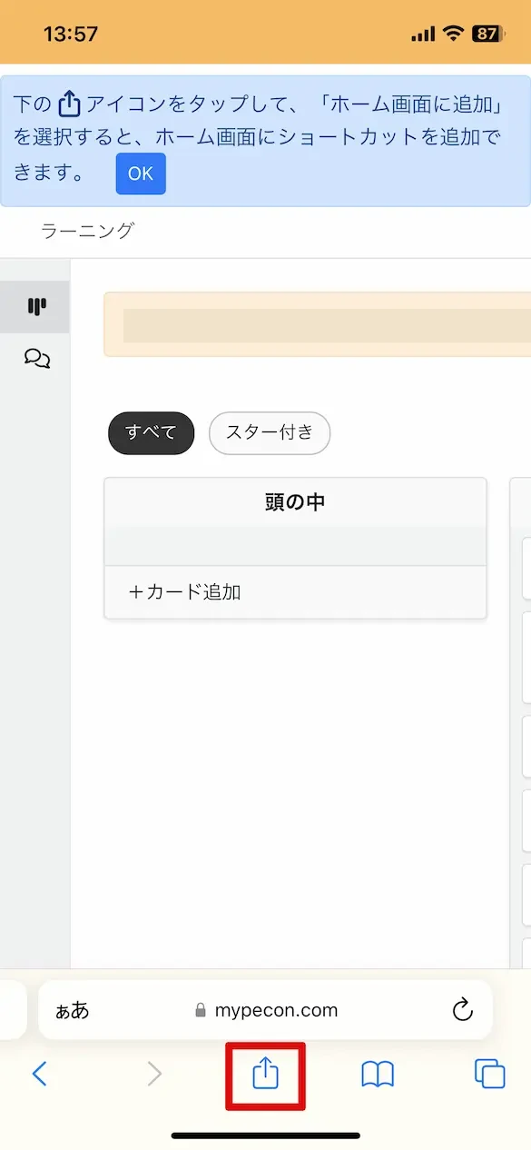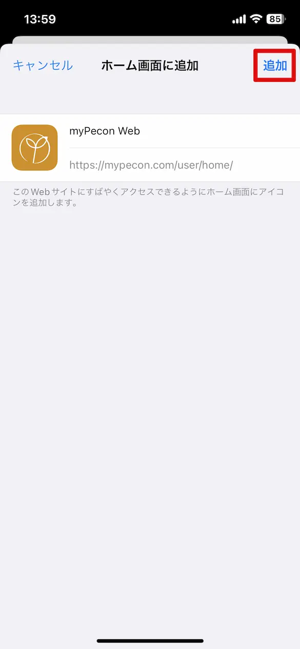 以上の手順で、 iPhone のホーム画面に myPecon を追加することができます。
